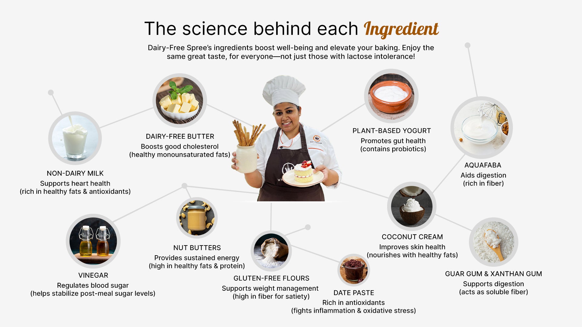 As a certified pastry chef, Padma’s journey into lactose-free baking is both personal and inspiring. Growing up in a South Indian household unaware of lactose intolerance, she often felt excluded from enjoying the desserts everyone else loved. Determined to overcome these challenges, Padma mastered the art of dairy-free baking, combining her scientific knowledge and creativity to craft treats that don’t compromise on flavor or texture.